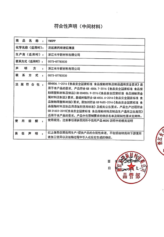 Changyu est pioneer et advocator "transparent aluminium cadmiae film ad packaging" in Chinese foro, quod factum est in diaprapore pro proficiscitur et pronotio de oxides ad cibum packaging, laminated et manticis pro cibo packaging. "