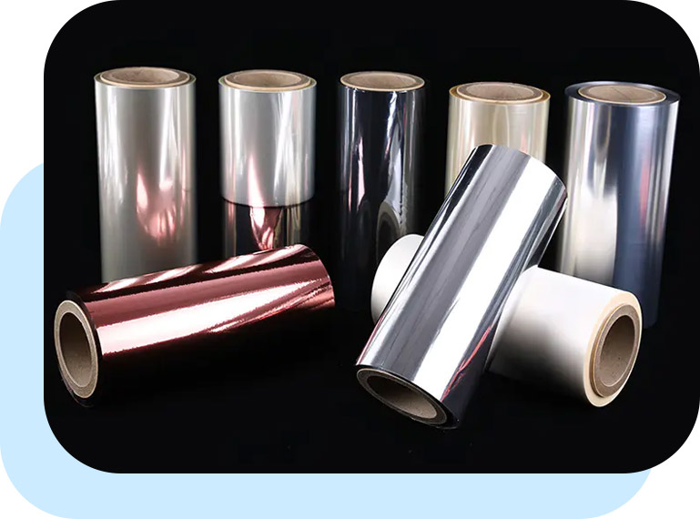 8 Comprehensive productsVarii metalized film (VMPET / VMCPPP / VMBOPP), coating film (PVDC / Acrylic / PVA), ALOXT CANTAD), continua PETING LAMENTUM / ENGLING PRINTA.